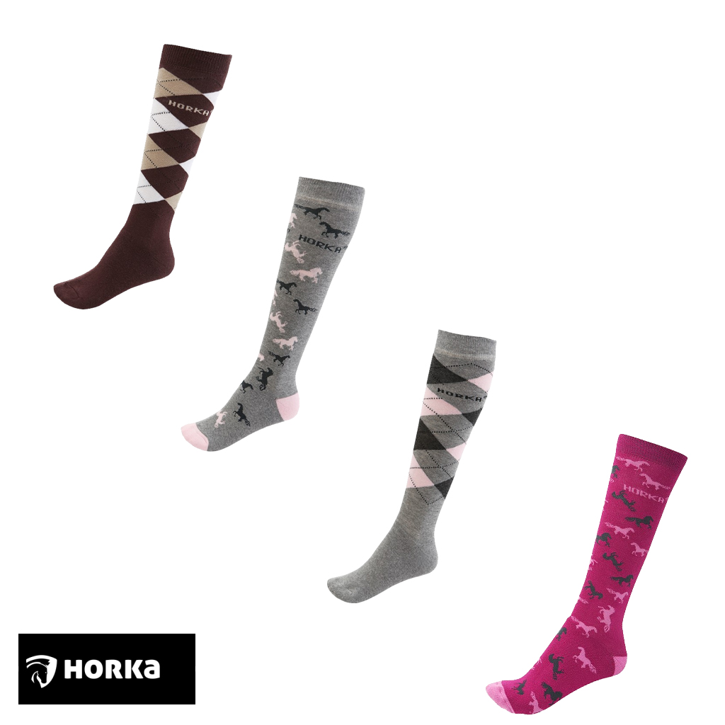 Horka riding socks are cotton knee socks with an extra soft footbed. Available in argyle or horse design.